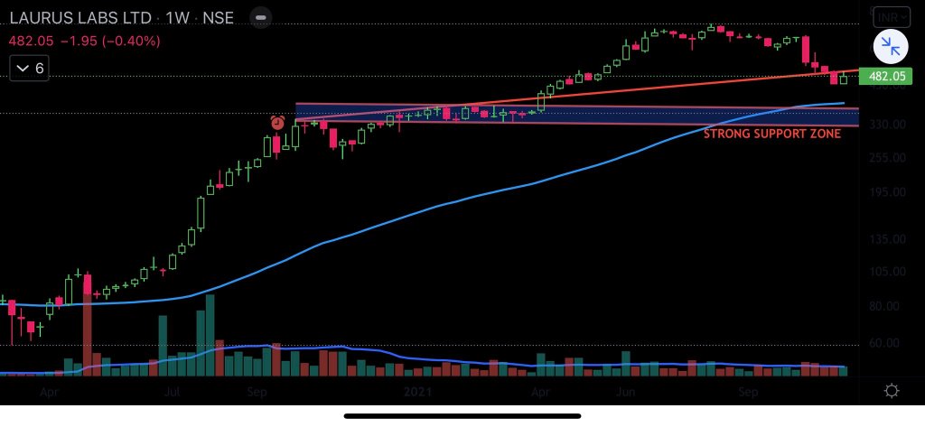 LaurusLabs made low of 452.3( 450 expected) and now taking resistance from trendline.