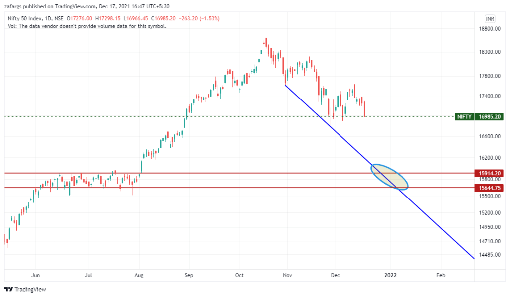 Are we staring at 15700-15900 levels on Nifty Dec 18 2021 Bad week for the Bulls Are we staring at 15700-15900 levels on Nifty by end Jan ? Share this: Share on X (Opens in new window) X Share on Facebook (Opens in new window) Facebook Print (Opens in new window) Print Share on LinkedIn (Opens in new window) LinkedIn Share on Tumblr (Opens in new window) Tumblr Share on Telegram (Opens in new window) Telegram Share on WhatsApp (Opens in new window) WhatsApp Email a link to a friend (Opens in new window) Email Like Loading... Related Published by Asmeet Shah View all posts by Asmeet Shah