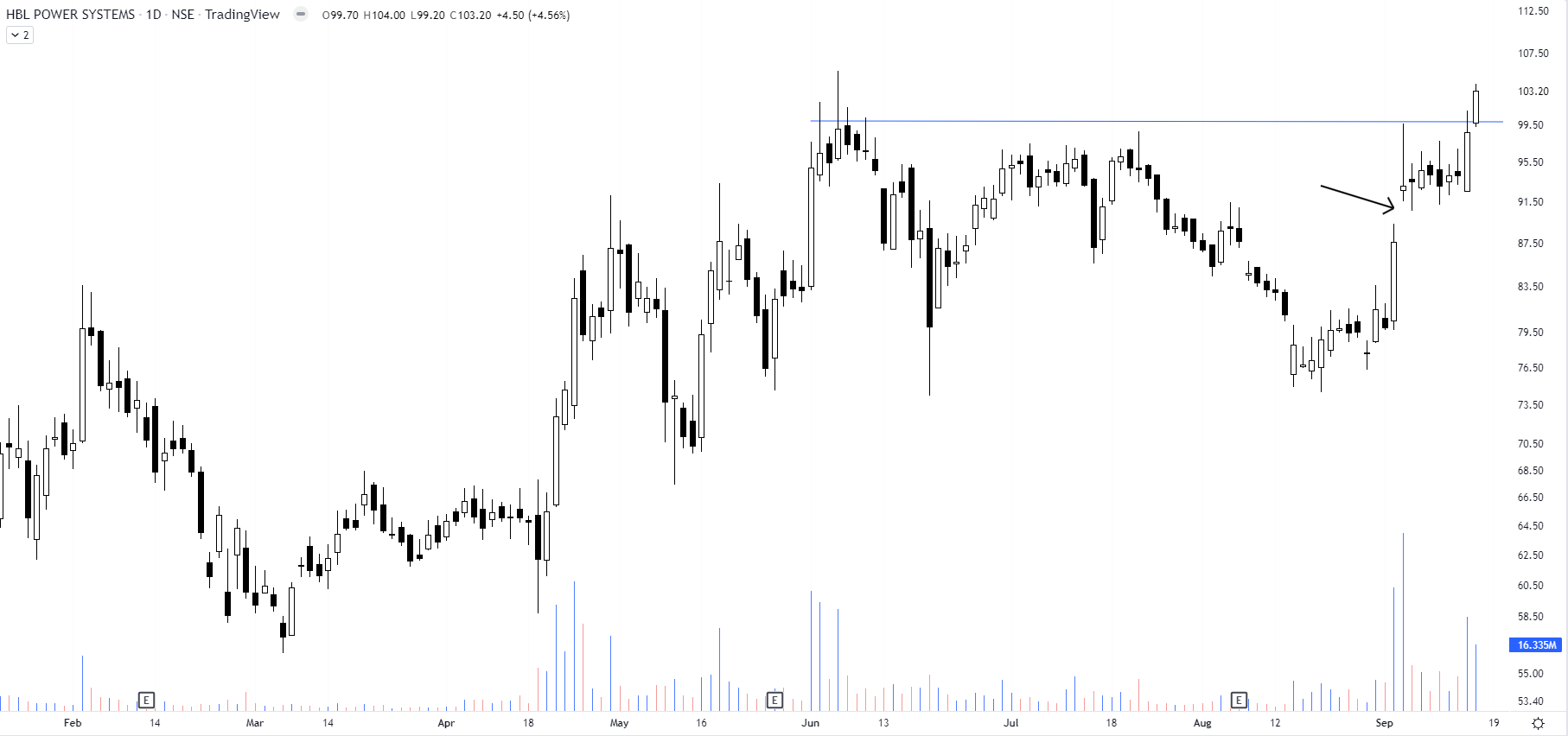 HBL Power – Soaring Volumes but an unfilled Gap Sep 16 202216 Sep 2022 Look at the soaring volumes with the highest closing & an unfilled gap HBL Power Chart Share this: Share on X (Opens in new window) X Share on Facebook (Opens in new window) Facebook Print (Opens in new window) Print Share on LinkedIn (Opens in new window) LinkedIn Share on Tumblr (Opens in new window) Tumblr Share on Telegram (Opens in new window) Telegram Share on WhatsApp (Opens in new window) WhatsApp Email a link to a friend (Opens in new window) Email Like Loading... Related Published by Asmeet Shah View all posts by Asmeet Shah