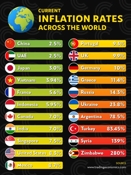 Inflation rates are zooming across the world to some very uncomfortable levels!