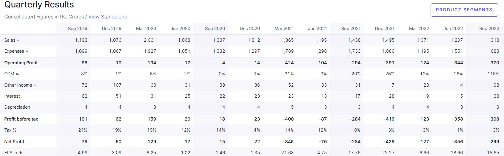 Sterling and Wilson Solar – 7th consecutive quarter of net losses Oct 13 202213 Oct 2022 Sterling and Wilson Solar: #Q2FY23 Update Net Sales: ⬇️78% (YoY);⬇️74% (QoQ) PAT: ⬇️5% (YoY);⬆️16% (QoQ) 7th consecutive quarter of net losses Share this: Share on X (Opens in new window) X Share on Facebook (Opens in new window) Facebook Print (Opens in new window) Print Share on LinkedIn (Opens in new window) LinkedIn Share on Tumblr (Opens in new window) Tumblr Share on Telegram (Opens in new window) Telegram Share on WhatsApp (Opens in new window) WhatsApp Email a link to a friend (Opens in new window) Email Like Loading... Related Published by Asmeet Shah View all posts by Asmeet Shah