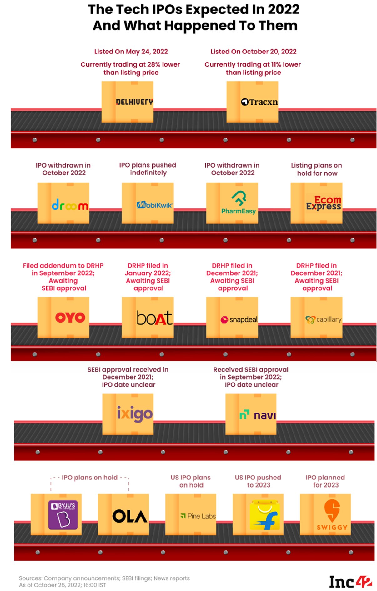 Despite the DRHP rush of 2021, only 2 companies were listed in 2022, & both had filed their pre-IPO papers last year.